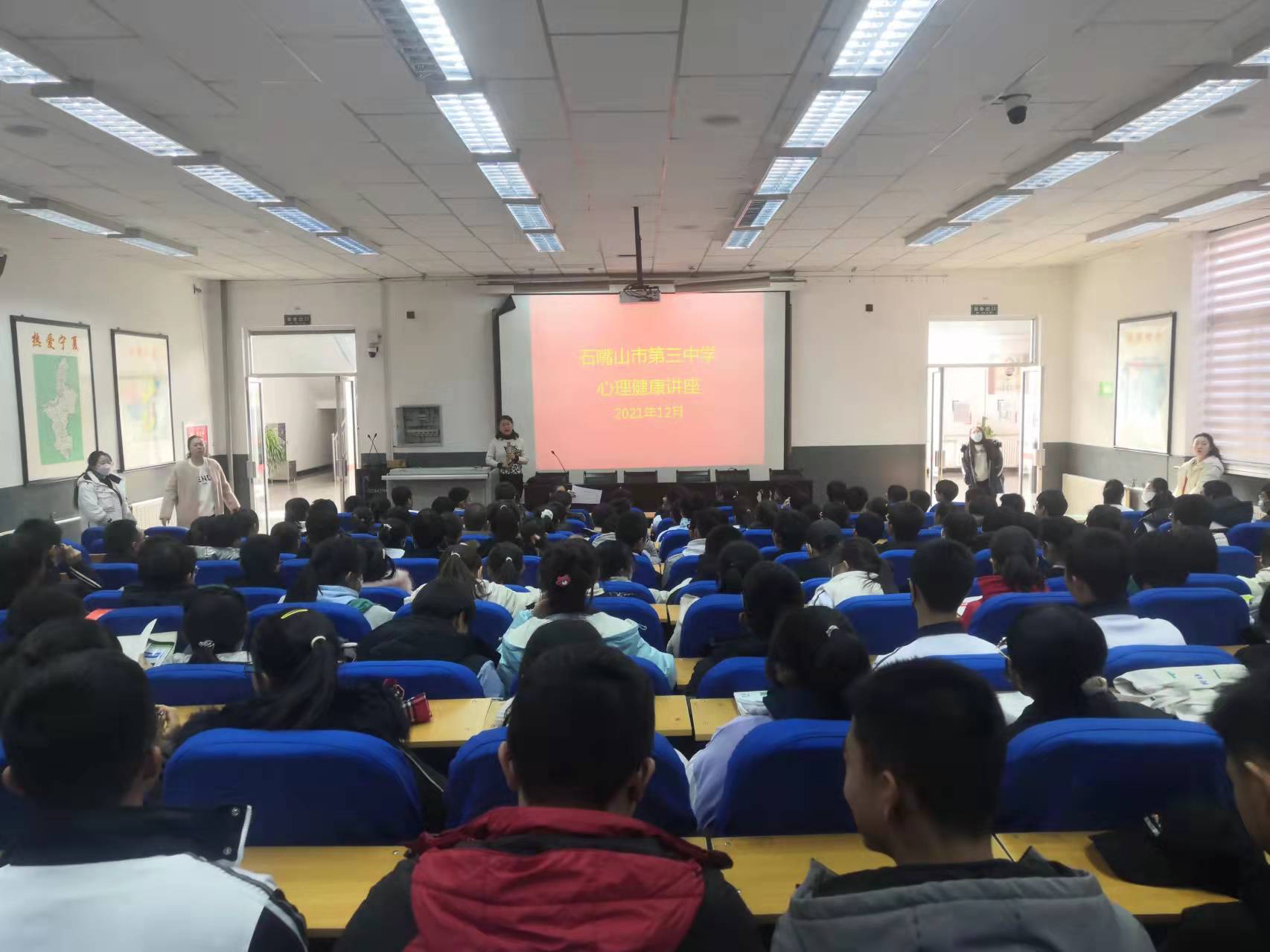 为更好普及心理健康知识,提高学生心理健康素质,促进学生健康发展,12月21日,大武口区卫生健康局联系自治区第五人民医院心理治疗师杨梅为石嘴山市第三中学高一4个班的学生进行“快乐健康 向着梦想起航”——中学生情绪管理专题心理讲座。