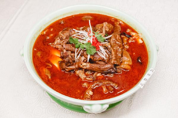 羊蹄去骨改刀,经多种调料腌制,入口软滑,麻辣筋道。羊蹄含有丰富的胶原蛋白质,具有很好的食疗作用。